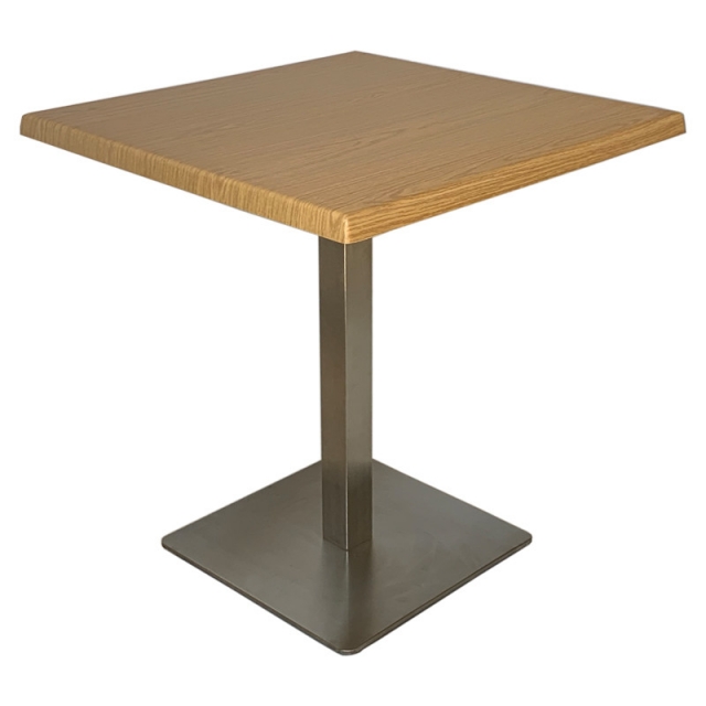 Маса Е19 е с метална основа с покритие от неръждаема стомана. Подходяща е за вътрешно и външно обзавеждане. Основата е с размер 45/45 см. Плота на масата е верзалит с размер 70/70см. Височина на масата 75h. Верзалитовите плотове се изработват по специална технология и термична обработка на дървени частици, смоли и меламин. Това е уникален продукт, които издържа на различни атмосферни условия- влага, слънце, температура до 180 градуса и повърхностно износване.