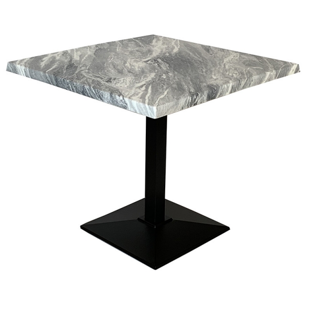 Маса Е43 е с чугунена основа с черно прахово покритие. Подходяща е за вътрешно и външно обзавеждане. Основата е с размер 45/45 см. Плота на масата е верзалит с размер 80/80см. Височина на масата -75h. Верзалитовите плотове се изработват по специална технология и термична обработка на дървени частици, смоли и меламин. Това е уникален продукт, които издържа на различни атмосферни условия- влага, слънце, температура до 180 градуса и повърхностно износване.
