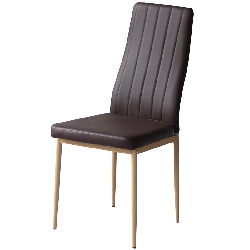 Трапезен стол АМ-А-311 е с метални крака имитиращи светло дърво и висок гръб . Тапициран е с еко кожа. Дебелината на седалката е 5 см.