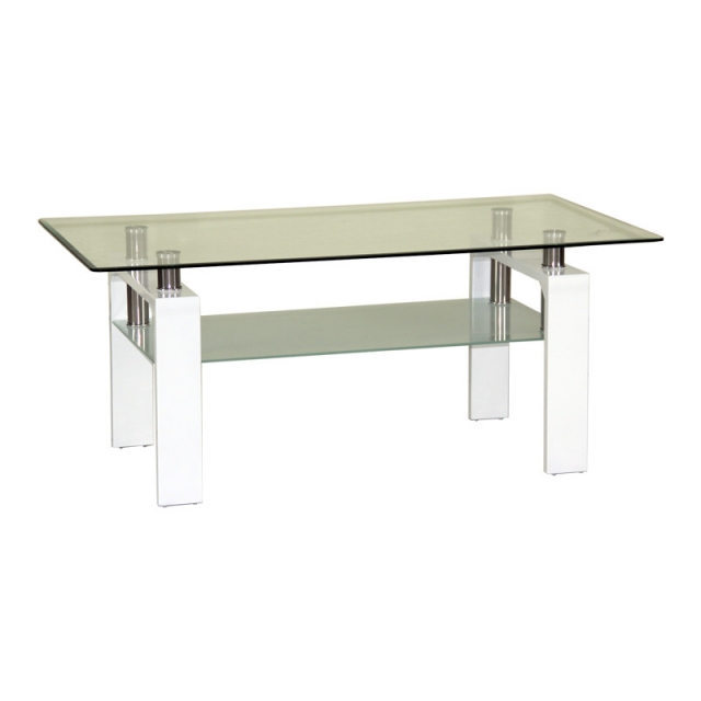 Холна маса АМ-В-230 е с крака от МДФ имитиращи дърво и темперирани стъкла. Масичката е с междинна височина от 60см, което я прави удобна и за по-високи дивани. Горния плот е прозрачен, а долния е с бяло стъкло. Предлага се в разглобен вариант. С опаковката тежи 35 кг.