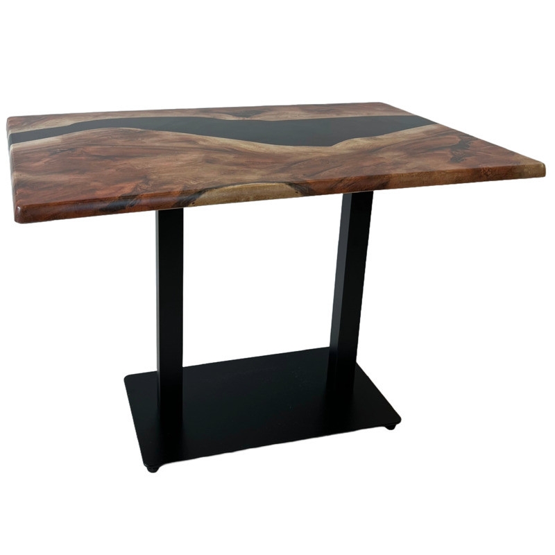 Маса Е93 е с метална основа с черно прахово покритие. Подходяща е за вътрешно и външно обзавеждане. Основата е с размер 70/40 см. Плота на масата е верзалит с размер 120/80см. Височина на масата -75h. Верзалитовите плотове се изработват по специална технология и термична обработка на дървени частици, смоли и меламин. Това е уникален продукт, които издържа на различни атмосферни условия- влага, слънце, температура до 180 градуса и повърхностно износване.