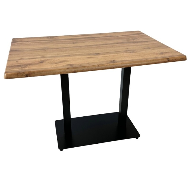 Маса Е93 е с метална основа с черно прахово покритие. Подходяща е за вътрешно и външно обзавеждане. Основата е с размер 70/40 см. Плота на масата е верзалит с размер 120/80см. Височина на масата -75h. Верзалитовите плотове се изработват по специална технология и термична обработка на дървени частици, смоли и меламин. Това е уникален продукт, които издържа на различни атмосферни условия- влага, слънце, температура до 180 градуса и повърхностно износване.