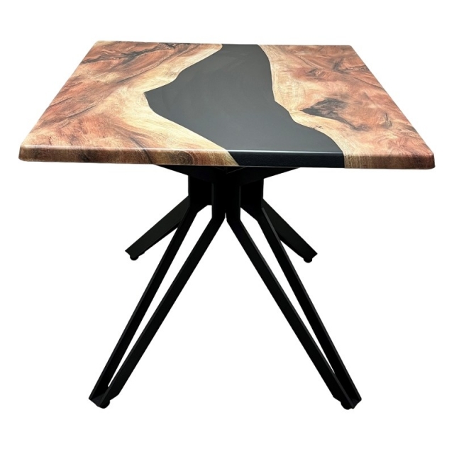 Стойка за маса Ева 4 е изцало метална, боядисана прахово в черен цвят. Стойката е с малки крачета за нивелиране. Плота на масата е верзалит с размер 80/80см. Височина на масата 75h. Верзалитовите плотове се изработват по специална технология и термична обработка на дървени частици, смоли и меламин. Това е уникален продукт, които издържа на различни атмосферни условия- влага, слънце, температура до 180 градуса и повърхностно износване.